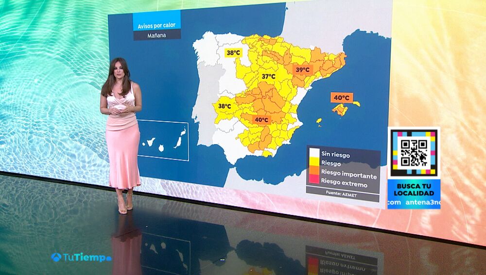 Esta noche aún se esperan algunas tormentas, pero mañana martes serán más anecdóticas y pasajeras. De momento, no hay avisos activados por chaparrones intensos, aunque no se descarta que por la tarde se de alguno más fuerte en las zonas de montaña de Galicia, el Cantábrico y el Pirineo. Además, es muy probable que la lluvia venga acompañada de barro, ya que el viento de componente sur arrastra polvo sahariano. En las demás comunidades, el día será calimoso pero sin riesgo de precipitaciones. Las temperaturas seguirán en alza, sobre todo en el interior y el litoral del Cantábrico oriental. Ciudades como Bilbao, Madrid, Jaén, Toledo y Palma rozarán o superarán los 40º a la sombra. Para mañana, 14 comunidades autónomas están en aviso por temperaturas extremas.