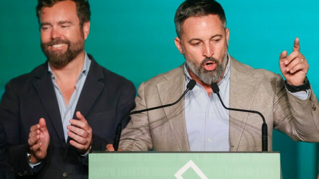 Con tono serio y haciendo silencio del 'batacazo' que ha sufrido el partido ultra, pues ha perdido 19 escaños con respecto a las últimas elecciones generales de noviembre de 2019, Santiago Abacal ha querido agradecer el apoyo de todos los españoles que han depositado su voto a favor de Vox. Al mismo tiempo, ha felicitado a Feijóo por su victoria, conseguida según él sin el apoyo de su formación. "Quiero felicitar al señor Feijóo porque ha ganado las elecciones, y además lo ha hecho no dependiendo de Vox, como también quería", ha dicho Abascal.