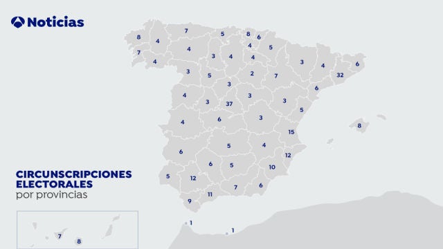 En el caso de las elecciones del 28 de abril, Madrid será la provincia con un mayor número de escaños (37), seguida de Barcelona (32) y Valencia (15). El resto de provincias mantienen el mismo número de escaños que en la convocatoria de 2016 salvo Asturias, que elegirá siete escaños (uno menos).