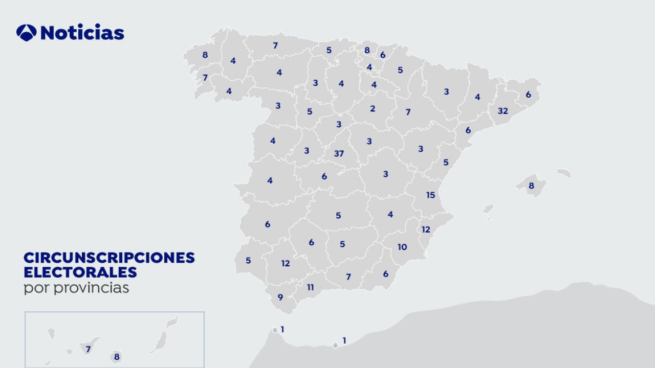 En España hay 52 circunscripciones electorales que se corresponden a las provincias y las ciudades autónomas españolas.
