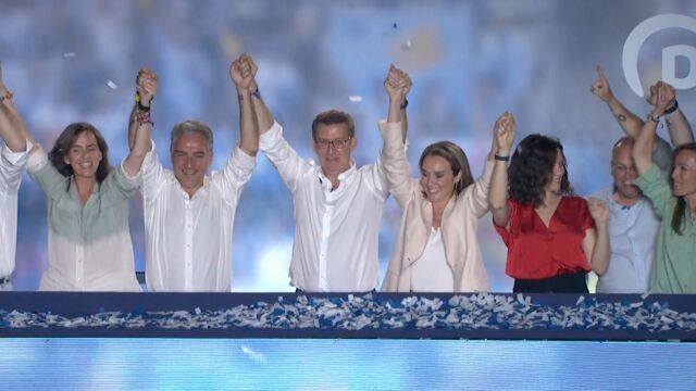 Alberto Núñez Feijóo ha comparecido tras los resultados de las elecciones en la sede del Partido Popular en Genóva (Madrid) para valorar los resultados obtenidos por su partido. "Hemos conseguido 8 millones de votos, tres más que en las últimas generales. ¿Cuál es nuestra obligación ahora? Es que no se abra un periodo de incertidumbres en España. Los españoles nos han dado la confianza al PP y han pedido a los partidos del arco parlamentario que dialoguemos. Como candidato del partido más votado, creo que mi deber es abrir el diálogo para liderar desde el primer minuto ese diálogo y para intentar gobernar nuestro país de acuerdo con los resultados y la victoria electoral".