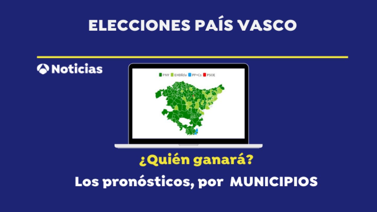 En este mapa podrás comprobar y repasar, pueblo por pueblo, quién será el ganador. La mayoría se los reparten PNV y EH Bildu, aunque llaman la atención dos casos. En Oyón, Álava, resultaría vencedora la coalición PP-Ciudadanos. Ermua, en Vizcaya, el pueblo del concejal del PP Miguel Ángel Blanco, asesinado por ETA en 1997, es el único municipio en el que ganaría el PSOE.