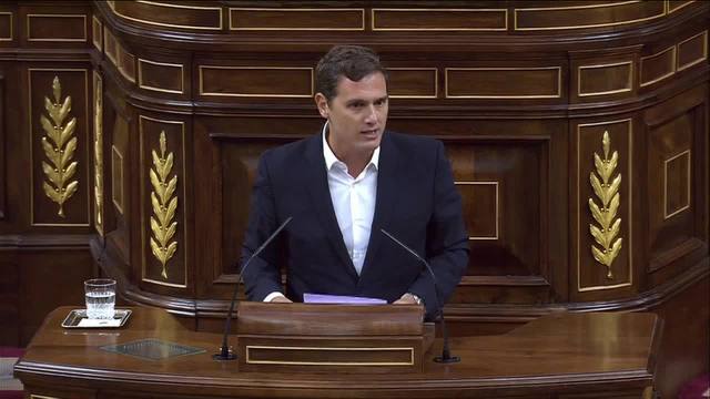 Albert Rivera, presidente de Ciudadanos, inicia su intervención dirigiéndose al presidente del Gobierno para reprocharle que su partido está convencido de que tiene que dar explicaciones sobre el caso Gürtel pero en una comisión anticorrupción bajo juramento.