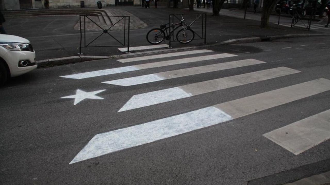 Este lunes algunos pasos de cebra de varias localidades de Cataluña han sufrido modificaciones y ahora son esteladas. Esto supone un delito recogido en el artículo 185 del Código Penal.