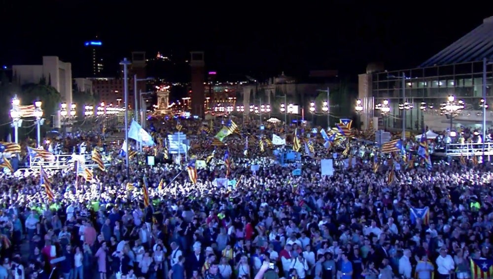 Ante miles de independentistas desplegados a lo largo de la avenida María Cristina, el presidente catalán ha llamado a "asegurar" este domingo que "la victoria sea definitiva", con el objetivo de que se pueda "acabar con el proceso para comenzar con el progreso social, económico, cultural y nacional".