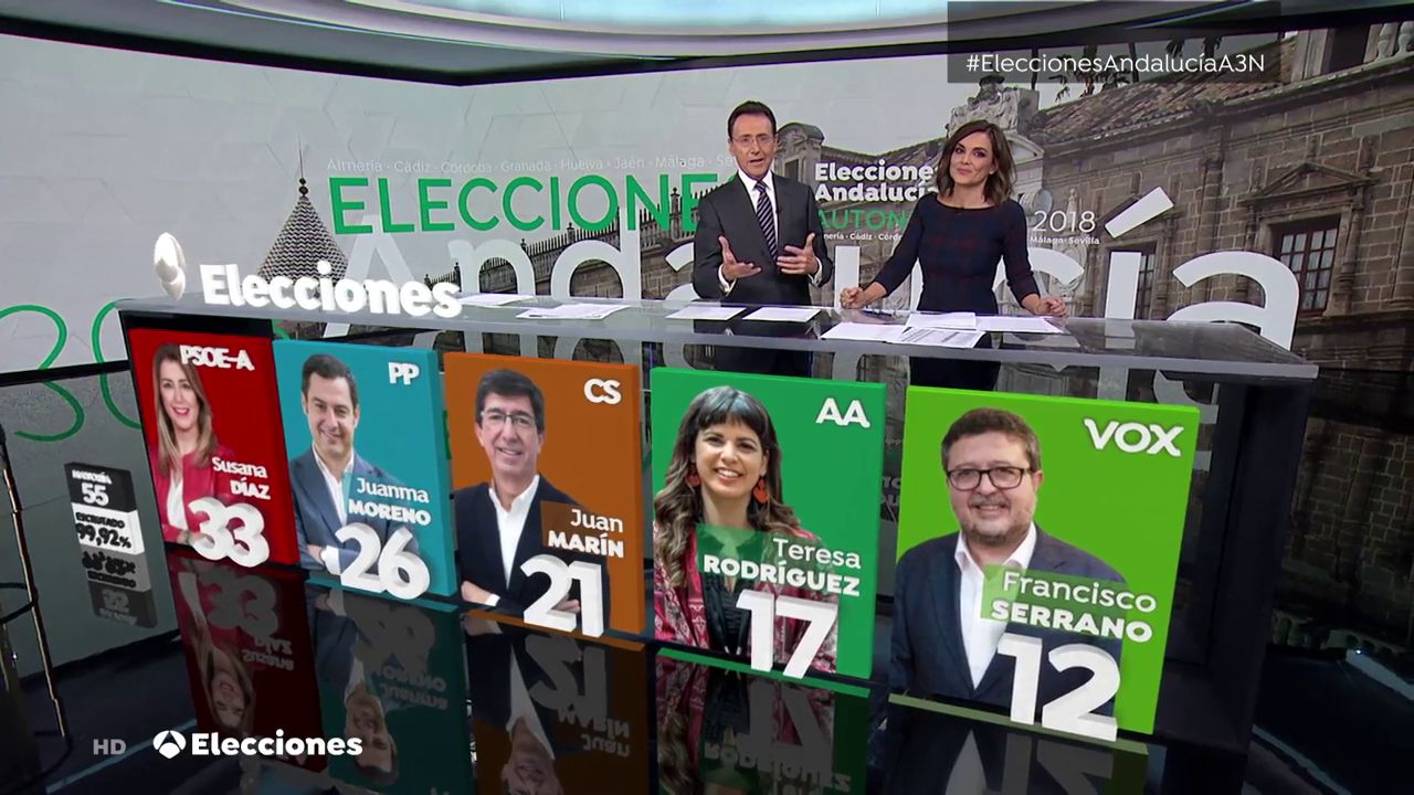 Atresmedia TV volvió a ser ayer la referencia informativa para la audiencia ante una nueva cita de relevancia política, en esta ocasión las Elecciones de Andalucía. Así, Antena 3 logró el informativo más visto del día con la segunda edición, que siguieron más de 2,2 millones de seguidores y que fue líder absoluto al igual que el informativo de sobremesa de la cadena (1.791.000 espectadores y el 14,8%).