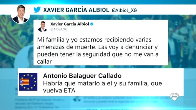 La semana pasada, García Albiol denunció haber recibido diferentes amenazas en Twitter contra él y su familia. En uno de los tuits se decía "habría que matarle a él y a su familia, que vuelva ETA". De la Mata tuvo conocimiento de estos mensajes y ha abierto una investigación.