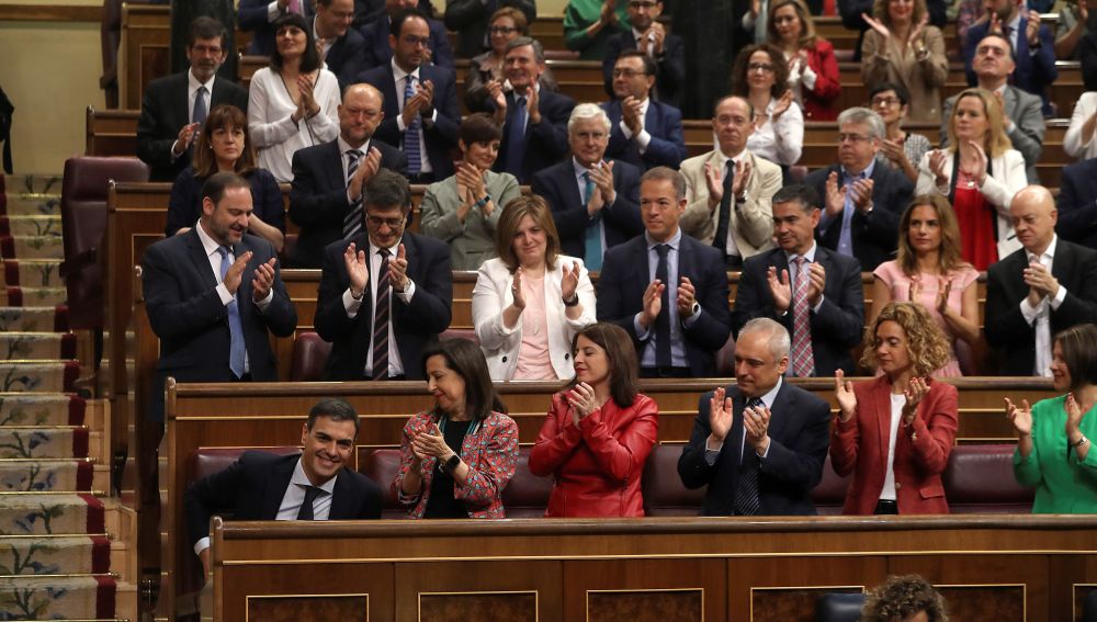 El secretario de Organización del PSOE y columna vertebral del partido, José Luis Ábalos, al que Sánchez encomendó la defensa de la moción de censura contra Mariano Rajoy, sería entonces el nuevo portavoz parlamentario.Patxi López, exlehendakari y secretario de Política Federal del PSOE, sería ministro de Interior y el secretario de Política Económica, Manuel Escudero, ministro de Economía.