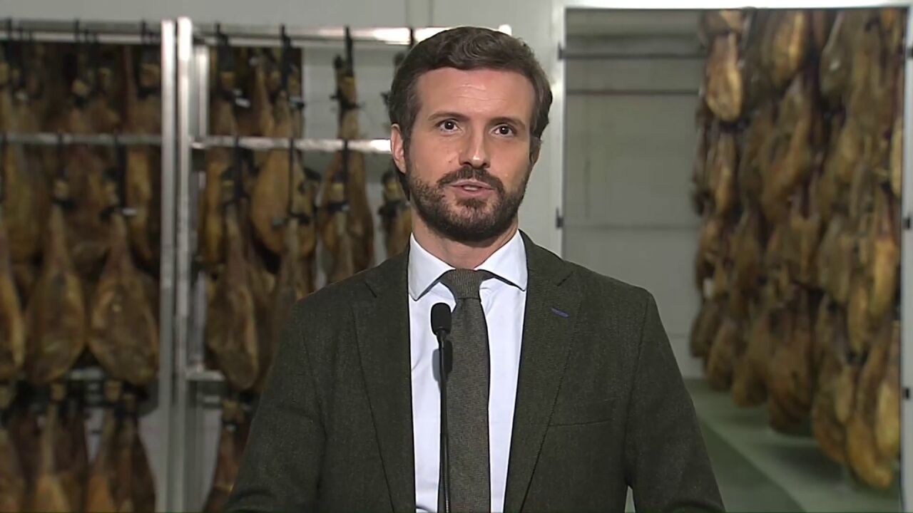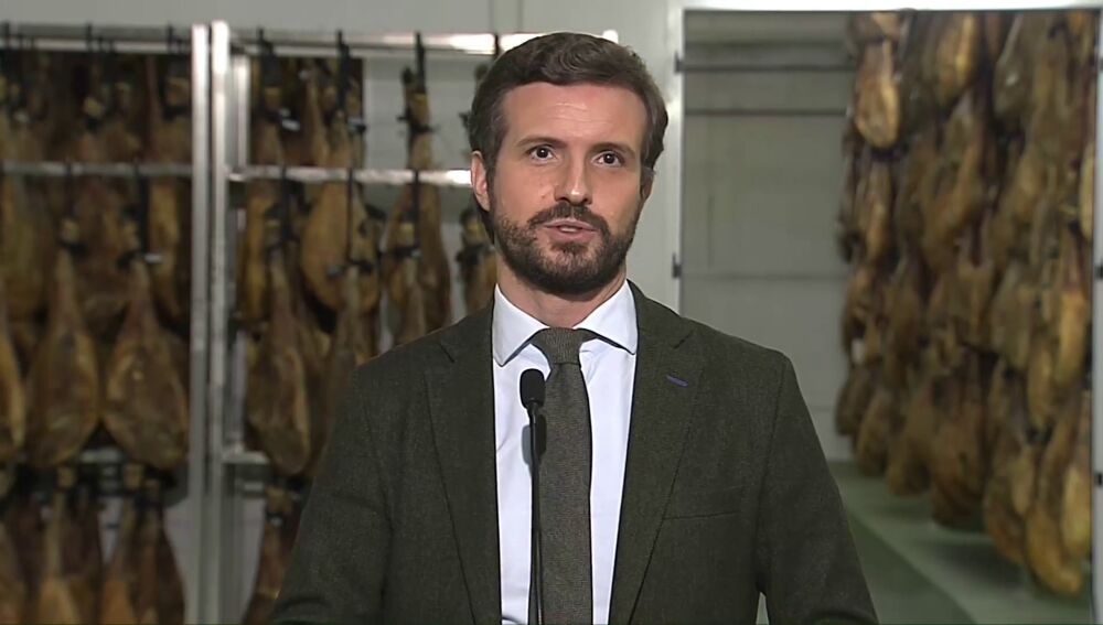 Pablo Casado ha visitado este lunes una fábrica de embutidos en Salamanca como parte de la campaña del Partido Popular en las elecciones de Castilla y León. Desde allí, Casado ha vuelto a reivindicar la industria cárnica y ha criticado los datos económicos de España, así como la gestión de la pandemia por parte del Gobierno.