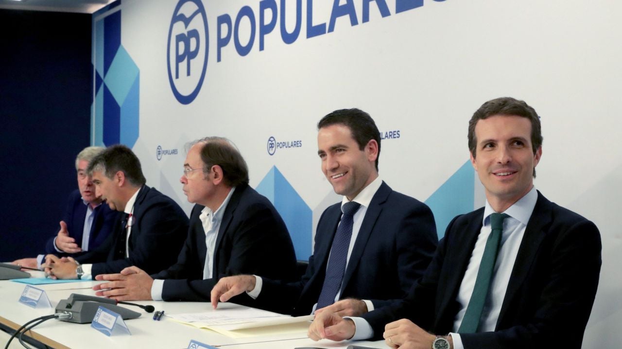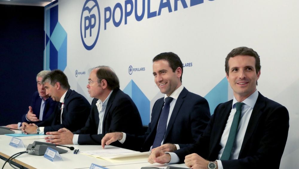 El líder del PP irá dando funciones en Congreso y Senado a algunos de los afines a Soraya Sáenz de Santamaría, que ha estado presente brevemente en la reunión con los grupos parlamentarios. Pablo Casado ha instado a los suyos a que no basen su discurso en el "no es no" como hacía Pedro Sánchez antes de llegar a la Moncloa, sino que expongan dicha oposición "con argumentos".