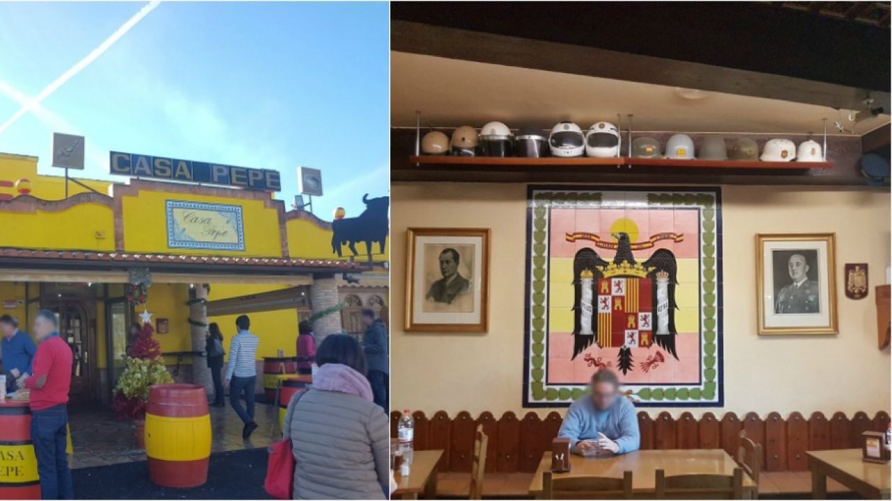Un establecimiento, explican, "con profusión de símbolos, fotos y frases del más puro estilo xenófobo, dictatorial y machista".