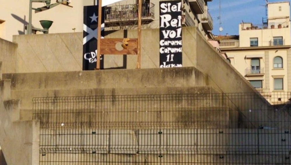 En la plaza L'1 d'Octubre de Girona ha aparecido una guillotina con un mensaje dirigido al rey: "Si el rey quiere corona, corona le daremos". En la parte destinada a la cabeza aparece una corona. El montaje se atribuye a los CDR, los llamados Comités de Defensa de la República que han protagonizado tradicionalmente las acciones independentistas de protesta en Cataluña.