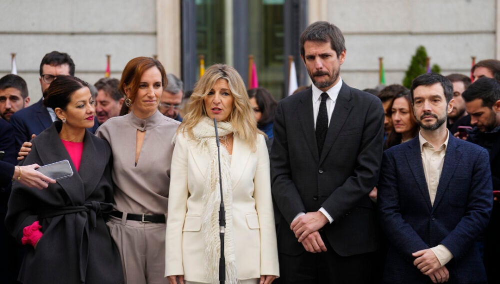 En su llegada al acto, la vicepresidenta segunda y líder de Sumar, Yolanda Díaz, ha dicho que lo visto el día anterior generaba desafección ciudadana y ha añadido que no les han dado otra opción. Una decisión de la que, desde el partido, se enteraron a través de los medios de comunicación.