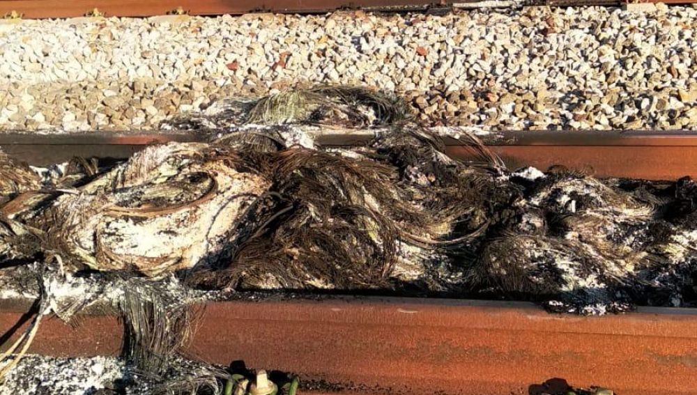 La línea de AVE entre Girona y Figueres se encuentra interrumpida después de que varios grupos de personas cortaran las vías con neumáticos quemados.