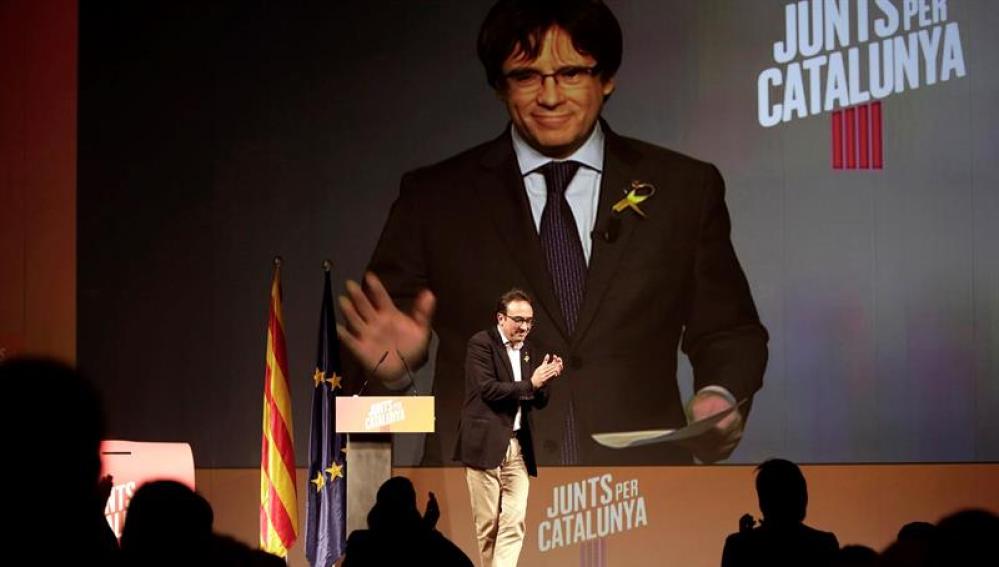 El número uno de Junts per Catalunya (JxCat), Carles Puigdemont, ha instado a Ciudadanos, PSC y PPC, a los que ha bautizado como "sindicato del 155", a clarificar si "respetarán los resultados" del 21D y si le dejarán volver a entrar al Palau de la Generalitat como president.