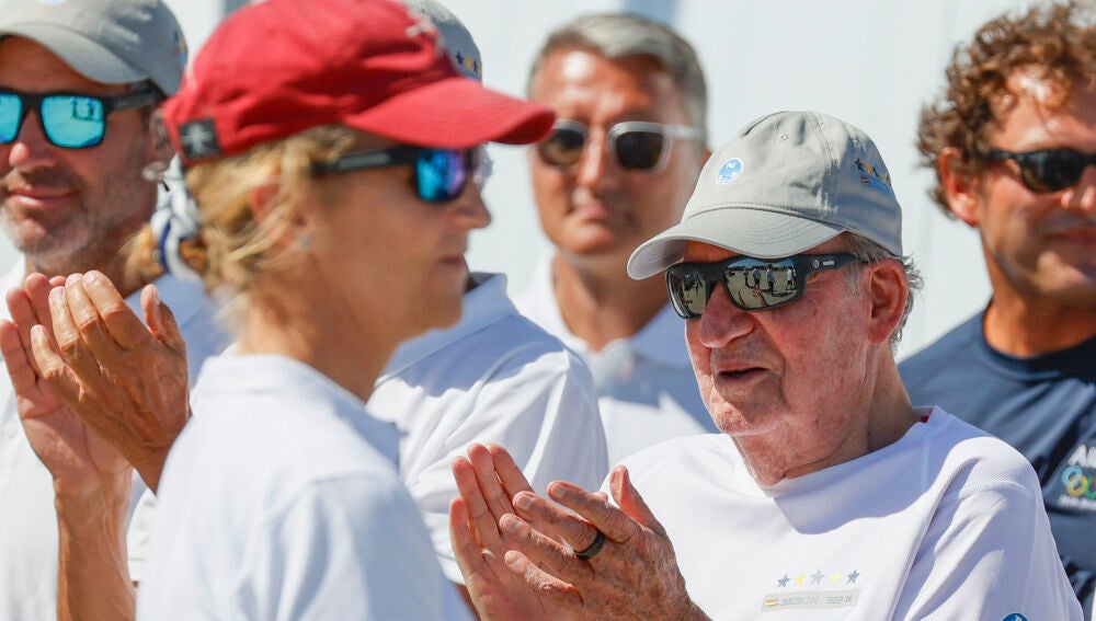 Juan Carlos I ha salido a navegar este domingo en las regatas de Sanxenxo, donde ha capitaneado 'El Bribón', que ha conseguido la primera posición. Después de más de tres horas de navegación por la ría de Pontevedra, la embarcación del exmonarca ha llegado a puerto pocos minutos antes de las 16:15 horas.