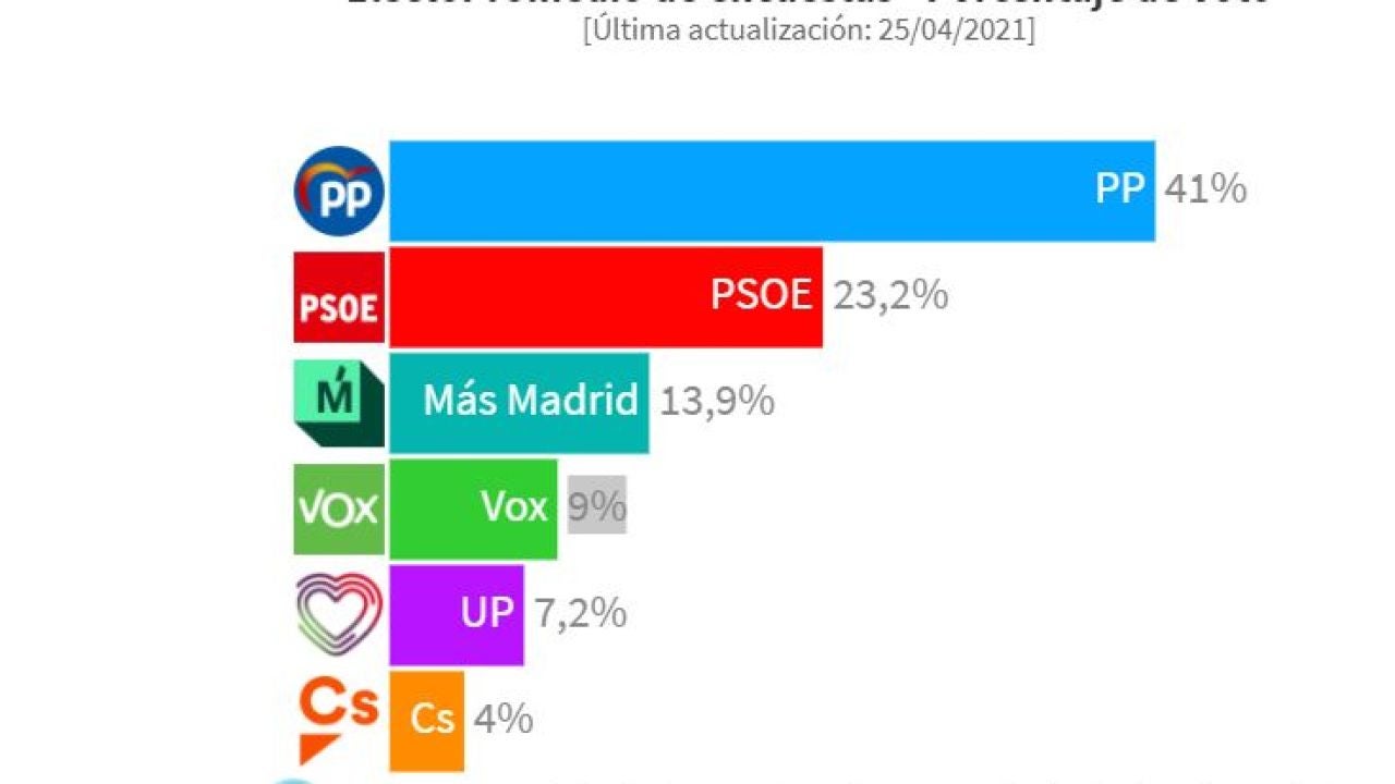 Las encuestas de las elecciones de Madrid dan por ganadora a Isabel Díaz Ayuso, que se encuentra ya a un paso del 42% de los votos.