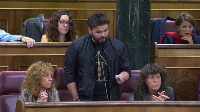 Rufián ha dirigido una pregunta a Rajoy en la sesión de control al Gobierno de la Cámara baja sobre la respuesta que está dando el Gobierno a las aspiraciones independentistas y en la que ha mostrado su rechazo a las primeras detenciones de altos cargos catalanes.