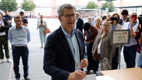 Alrededor de las 11:00 horas de este domingo electoral, el líder del Partido Popular, Alberto Núñez Feijóo, ha votado en el colegio madrileño Ramiro de Maeztu. Feijóo ha acudido en compañía del alcalde de Madrid José Luis Martínez- Almeida y, tras depositar su voto en la urna, ha llamado a la movilización democrática "sin crispación y sin insultos".