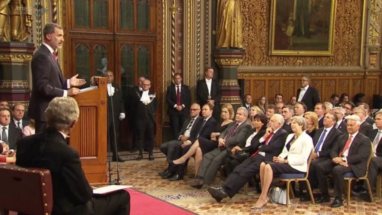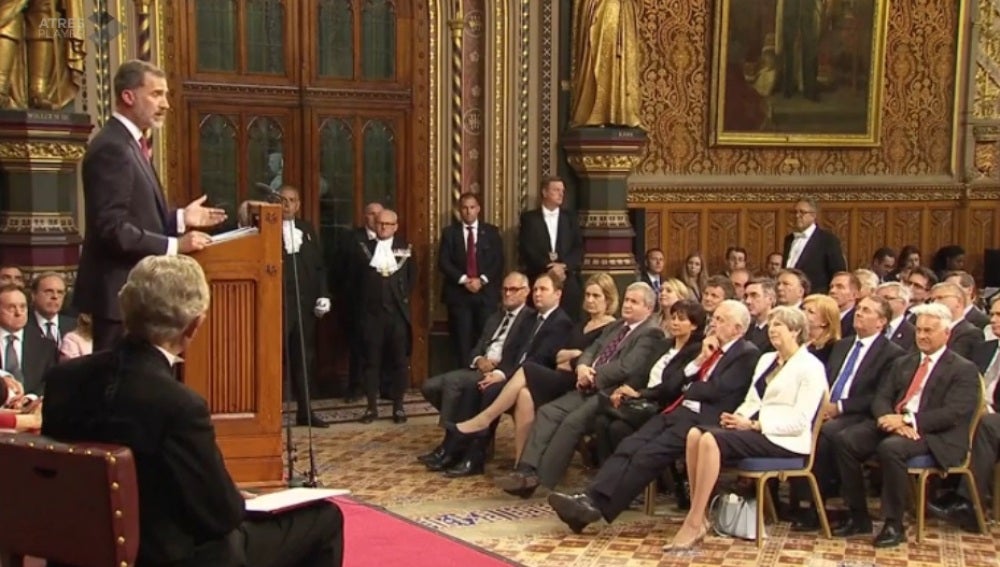 En el segundo discurso pronunciado por un monarca español ante el Parlamento británico, tras el que hace 31 años leyó el Rey Juan Carlos, Felipe VI animó asimismo a los dos Ejecutivos a seguir trabajando para que el acuerdo de salida del Reino Unido de la UE garantice la "necesaria confianza y certidumbre" a los cientos de miles de españoles y británicos residentes en los respectivos países.