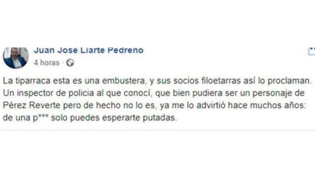 Liarte, portavoz en Murcia de la formación liderada por Santiago Abascal, compartió una publicación en su perfil de la red social Facebook en la que parecía referirse a Delgado como a una "tiparraca embustera". "De una p*** solo puedes esperarte putadas", y por las que fue después criticado.