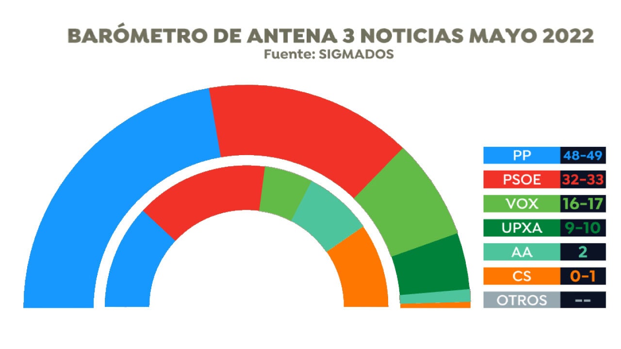 El Partido Popular lograría más escaños que la suma de toda la izquierda en las próximas elecciones andaluzas del 19 de junio, según la última encuesta de Sigma Dos para Antena 3 Noticias.