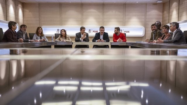 Aseguran que han mejorado las condiciones de vida de millones de personas y el portavoz de la gestora ha situado por primera vez a Pedro Sánchez, Patxi López y Susana Díaz en el mismo marco de unas primarias aún no convocadas oficialmente y para las que quedan todavía tres meses.