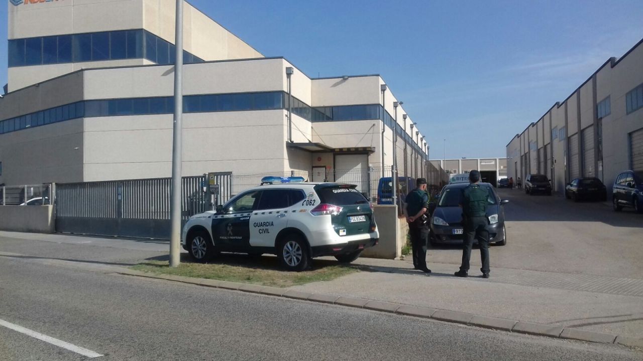 Dos dotaciones de la Guardia Civil controlan desde las dos de la tarde del miércoles las entradas de la imprenta Indugraf en el polígono industrial de Constantí (Tarragona) y registran los coches de los empleados cuando salen. También han registrado al servicio de limpieza de esta imprenta, una de las mayores de la provincia que, entre sus clientes, constan publicaciones escritas y partidos políticos.