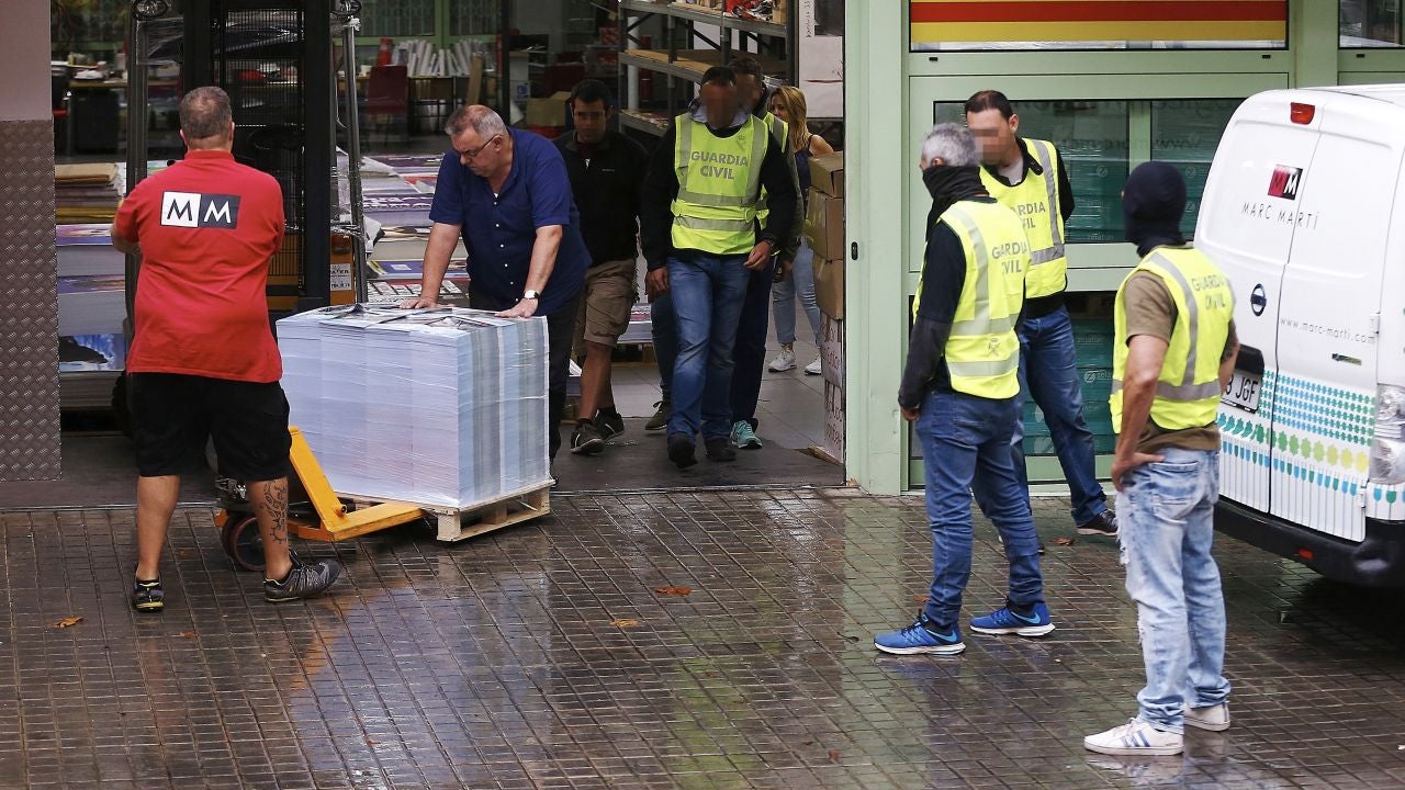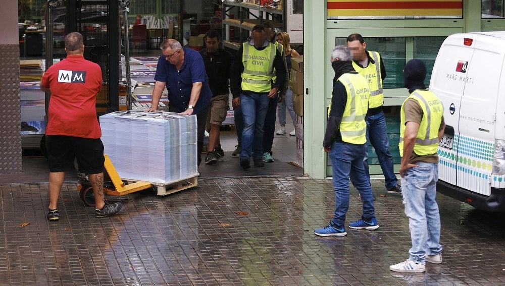 La Guardia Civil ha intervenido en las últimas horas en una nave industrial de Sabadell (Barcelona) 100.000 dípticos de material electoral sobre el referéndum independentista de Cataluña, suspendido por el Tribunal Constitucional, según han informado fuentes próximas al instituto armado. Varios efectivos se han personado en la planta sobre las 7 horas de este lunes y tras unas dos horas se han marchado con este cantidad de material que publicitaba el 1-O, con las imágenes del cruce de las vías del tren.