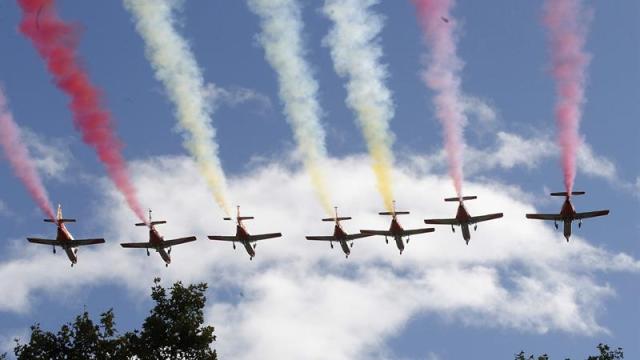 En el desfile aéreo participarán 88 aeronaves entre cazas, aviones de transporte y helicópteros, que sobrevolarán el Paseo de la Castellana en dirección sur-norte. Como novedad en esta ocasión, en la exhibición participarán por primera vez aeronaves de Salvamento Marítimo -dependiente del Ministerio de Fomento- y de la Policía Nacional.