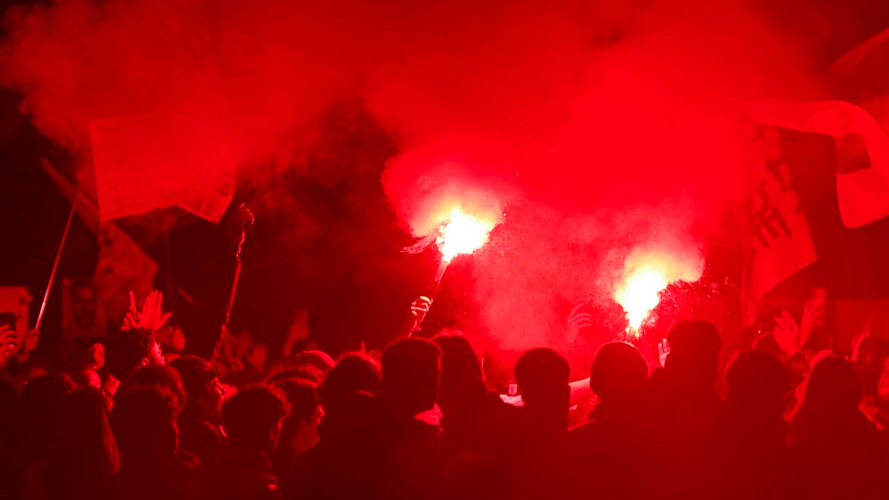 Algunos de los manifestantes lanzaron bengalas, botellas y otros objetos a las fuerzas de seguridad, que tuvieron que intervenir lanzando pelotas de goma para dispersar.