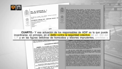 En el auto, Aláez explica que los informes preeliminares entregados por cuatro de los seis peritos en los últimos días aportan información que, a su juicio, "acarrea una provisional atribución de responsabilidades penales a determinadas personas de Adif responsables de la seguridad en la circulación ferroviaria como potenciales autores de un delito contra la seguridad colectiva, previsto y penado en el artículo 350 del Código Penal, y partícipes en los delitos de homicidio y lesiones de los artículos 142 y 152 del Código Penal".