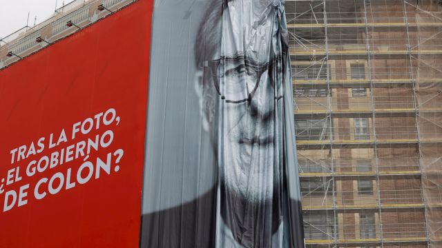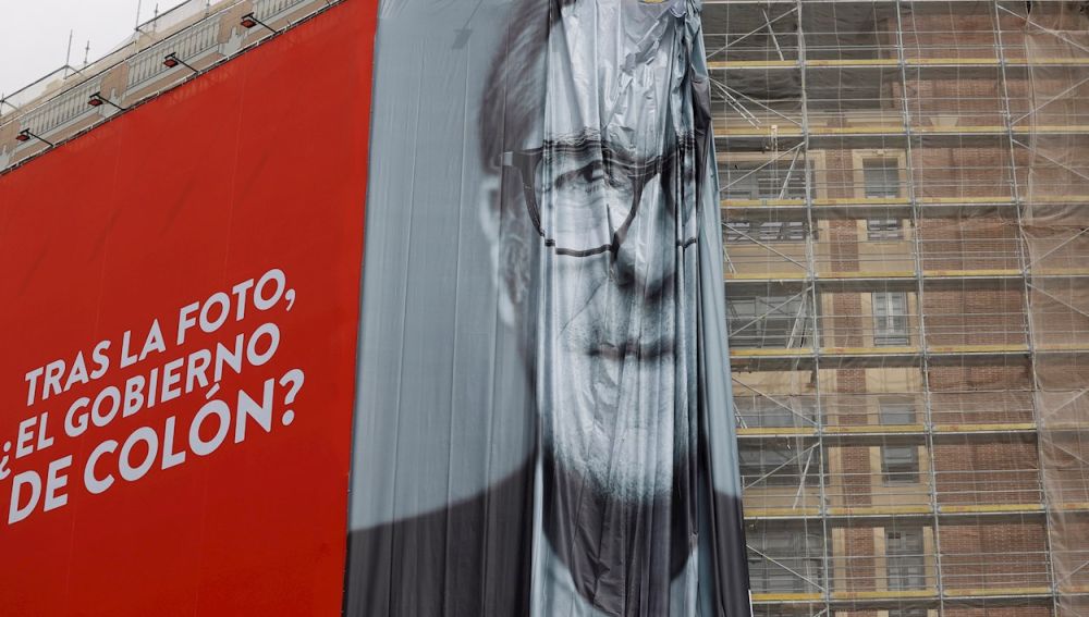 Los socialistas desplegaron dicha lona mientras pedían a los ciudadanos "evitar el Gobierno de Colón".