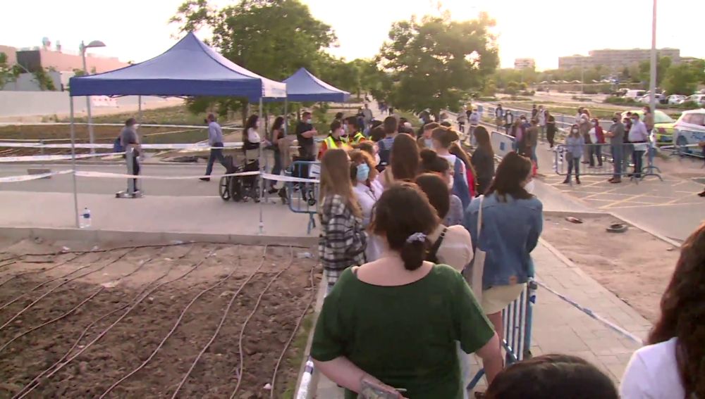 Desde primera hora de la mañana se han empezado a formar filas de jóvenes, que han llegado a esperar hasta tres horas antes de recibir el pinchazo.