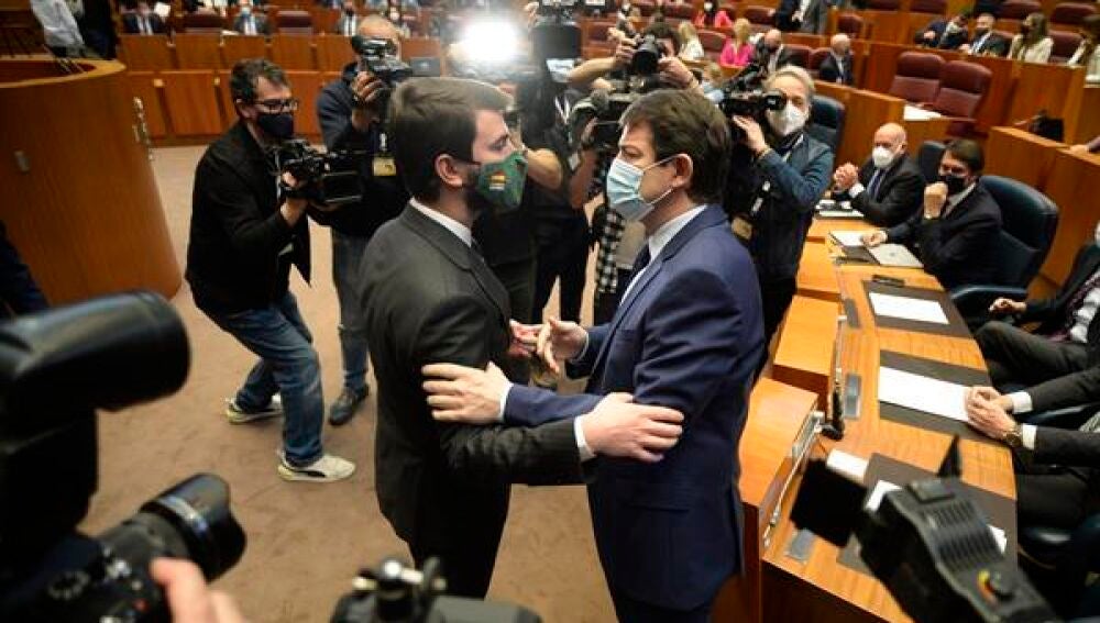 El popular Alfonso Fernández Mañueco se ha sometido al debate de investidura en las Cortes regionales, en Valladolid. Dos meses después de las elecciones autonómicas, Mañueco será investido presidente de Castilla y León formando el primer gobierno de coalición entre el Partido Popular y Vox en una autonomía.