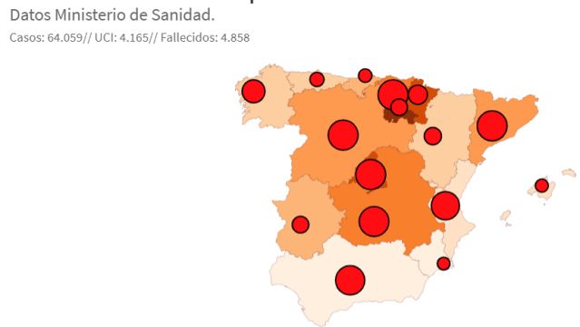 Las cifras de coronavirus en España en las últimas 24 horas empiezan a arrojar algo de luz sobre la situación, ya que son las menos malas en cuanto a contagiados y fallecidos en una semana. Consulta todos los casos de covid-19 en este mapa a tiempo real.