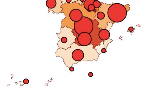 En este mapa puedes ver cómo evolucionan todos los datos de contagiados, ingresados en UCIs, fallecidos y curados en tiempo real.