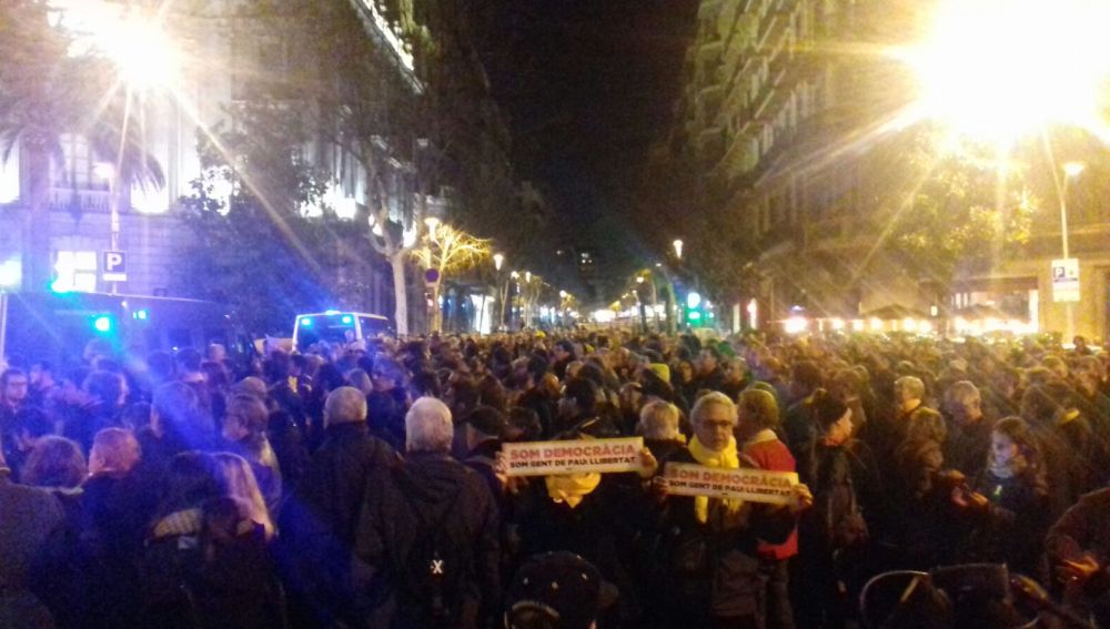Los manifestantes han ocupado las calles de Mallorca y Roger de Llúria a la altura de la Delegación del Gobierno al grito de "Libertad presos políticos". "Las calles serán siempre nuestras", "1 de octubre, ni olvido ni perdón" o "Fuera las fuerzas de ocupación" han sido otros de los eslóganes coreados en la concentración, que también ha sido convocada frente a las sedes de las subdelegaciones del Gobierno en Tarragona, Lleida y Girona.