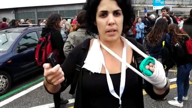 La mujerhacía tareas de apoyo en un instituto del Eixample habilitado como colegio electoral el pasado domingo durante el referéndum ilegal. Torrecilla tuvo que ser atendida en un hospital por lesiones en los dedos de una mano causadas durante una intervención de la Policía Nacional.