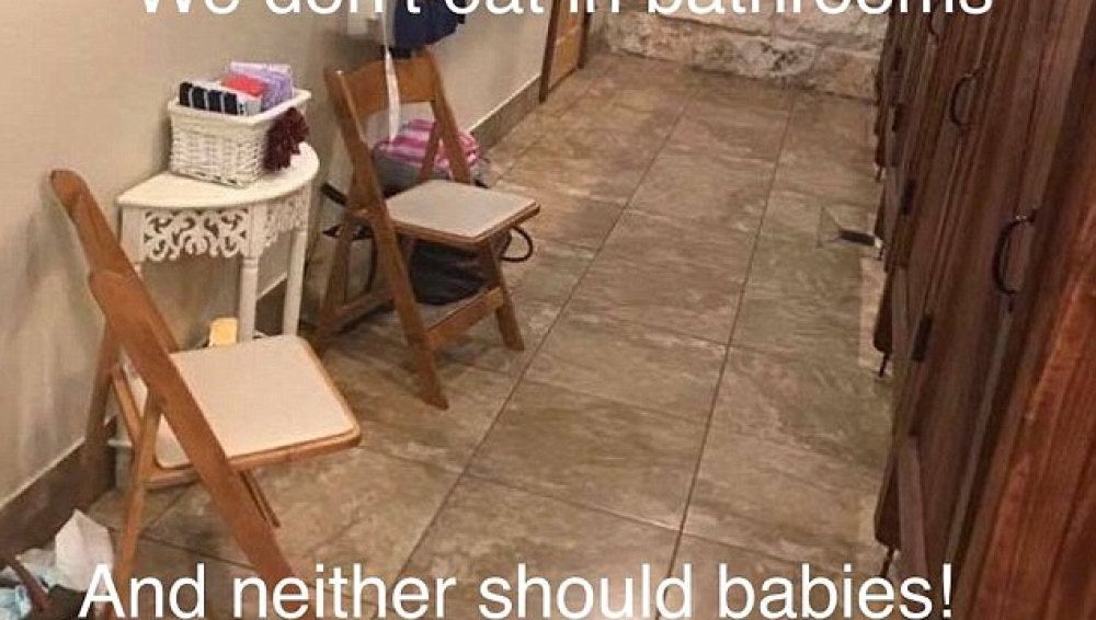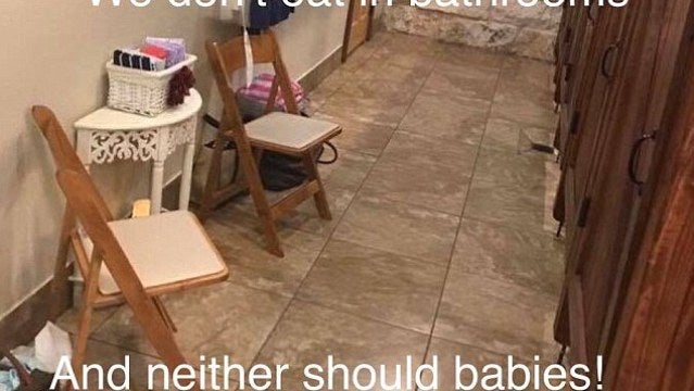 Después de la boda, Ceara LaFrance creó un meme con la imagen del "área de lactancia materna designada" en el cuarto de baño en el evento con las palabras, "no comemos en baños y tampoco debemos bebés", y lo compartimos con la mamá de lactancia materna Grupo de Facebook , provocando indignación entre otras mamás,informa Daily Mail.