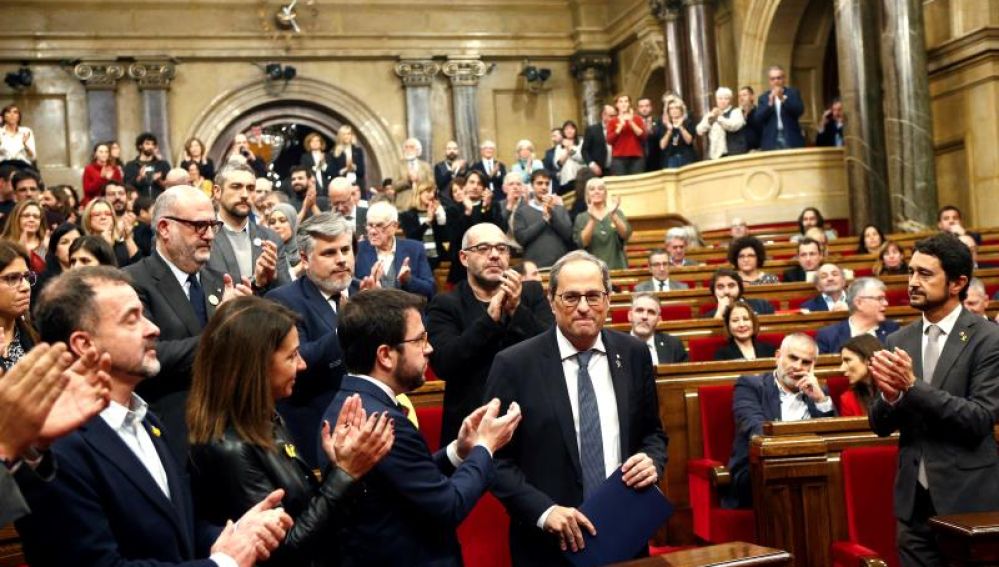 El parlament ha aprobado con las tres fuerzas independentistas y los comunes una resolución que ratifica a Quim Torra como diputado y como presidente de la Generalitat. Esta resolución va en contra de la decisión de la Junta Electoral Central (JEC) de inhabilitar a Torra.
