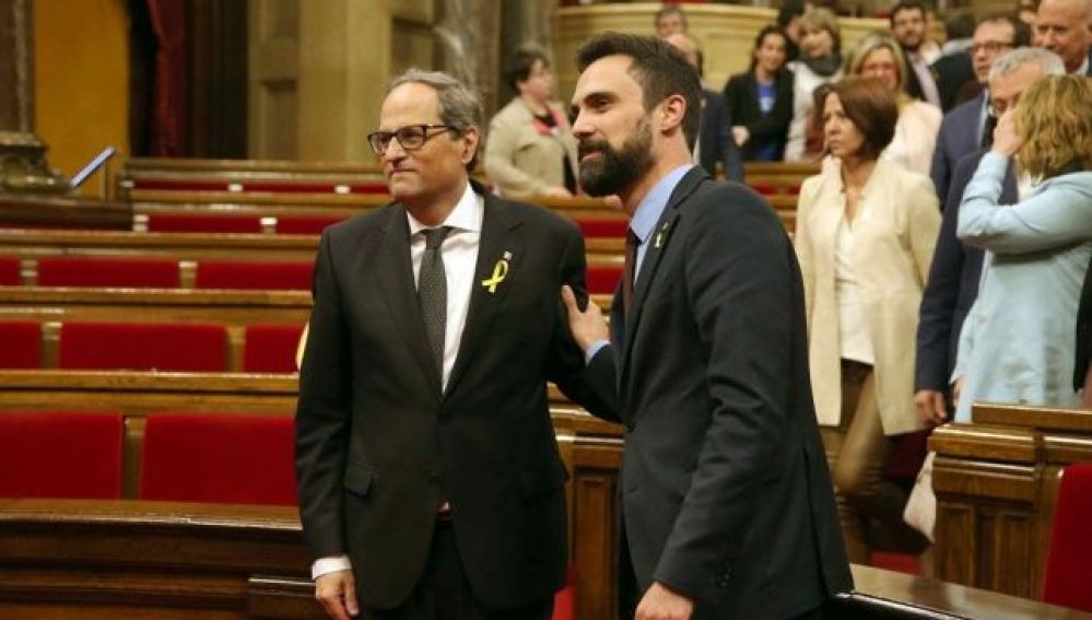 El presidente del Parlamento catalán, Roger Torrent, ratifica a Quim Torra como parlamentario y por lo tanto al frente de la Generalitat, basándose en una lectura del reglamento que dice que no cabe el inhabilitación sobrevenida.