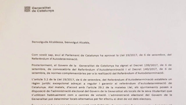 También recuerdan que ahora hay un "régimen jurídico excepcional dirigido a regular y garantizar el referéndum" y que los cargos públicos deben cumplirlo, aunque detallan que el Govern quiere utilizar todos los locales que fueron puntos de votación en las elecciones al Parlament del 27 de septiembre de 2015, las últimas autonómicas.