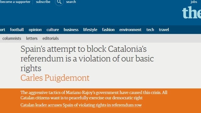 El Gobierno considera que el artículo firmado por el presidente de la Generalitat, Carles Puigdemont, en el diario británico 'The Guardian' y en el que pide ayuda internacional ante la situación en Cataluña se trata de "una colección de mentiras".