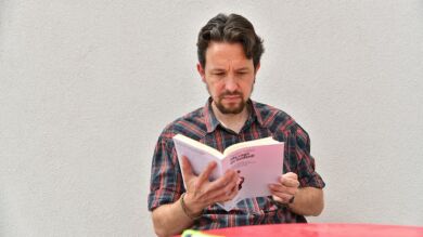 Pablo Iglesias hace oficial su nuevo look sin coleta con unas imágenes en la que aparece leyendo un libro del periodista Pedro Vallín.