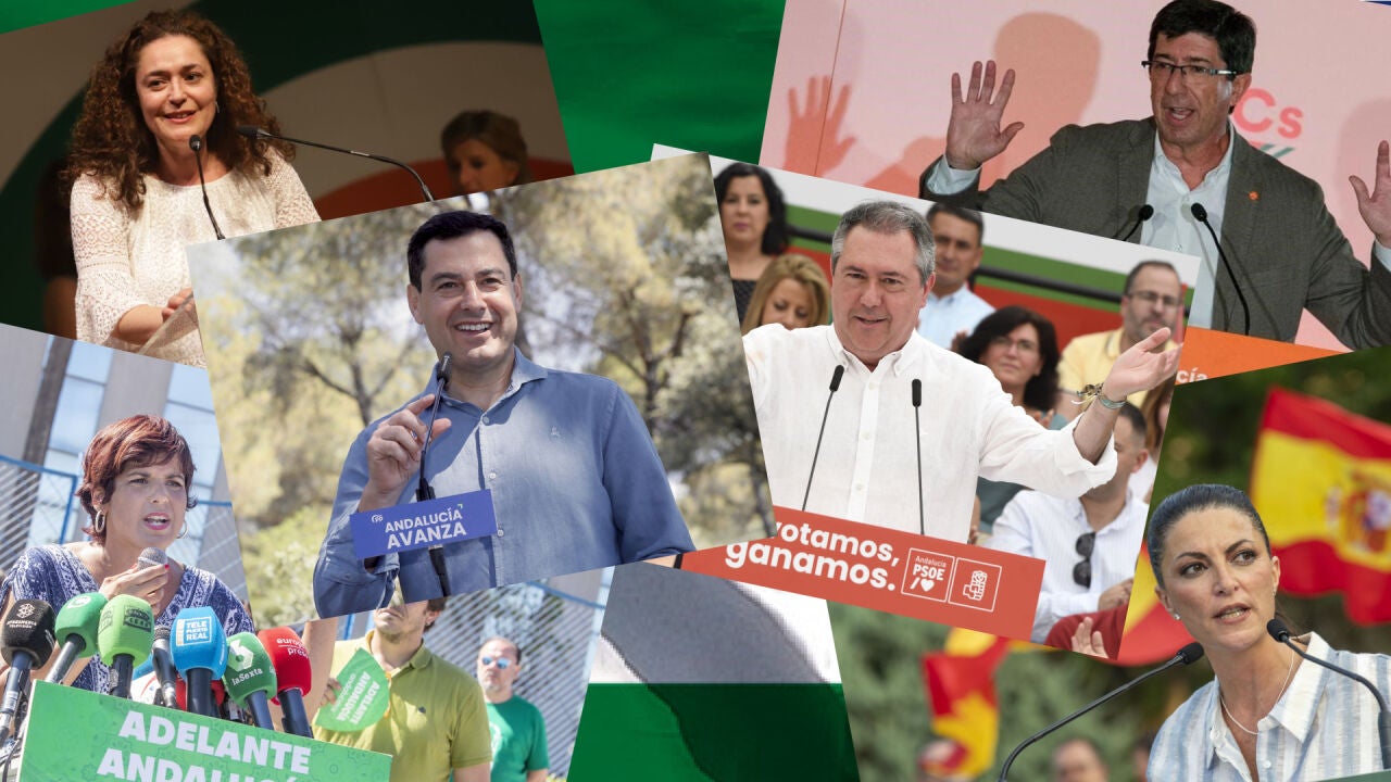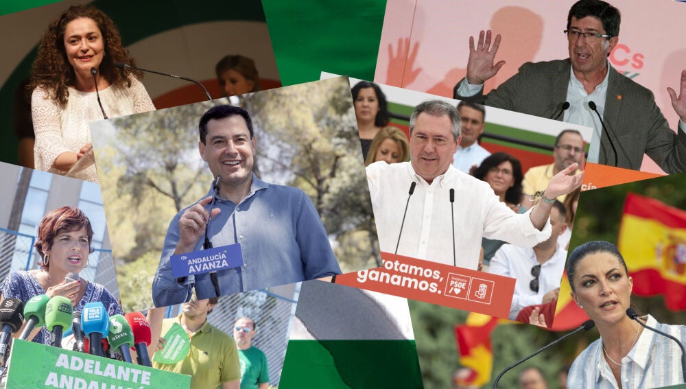 Las elecciones a la Junta de Andalucía se celebran este domingo después de semanas de intensos debates, mítines y declaraciones cruzadas de sus candidatos. Juanma Moreno (PP), Juan Espadas (PSOE), Macarena Olona (Vox), Teresa Rodríguez (Adelante Andalucía), Inmaculada Nieto (Por Andalucía) y Juan Marín (Ciudadanos) han dedicado horas a la dialéctica para intentar plasmar su discurso.
