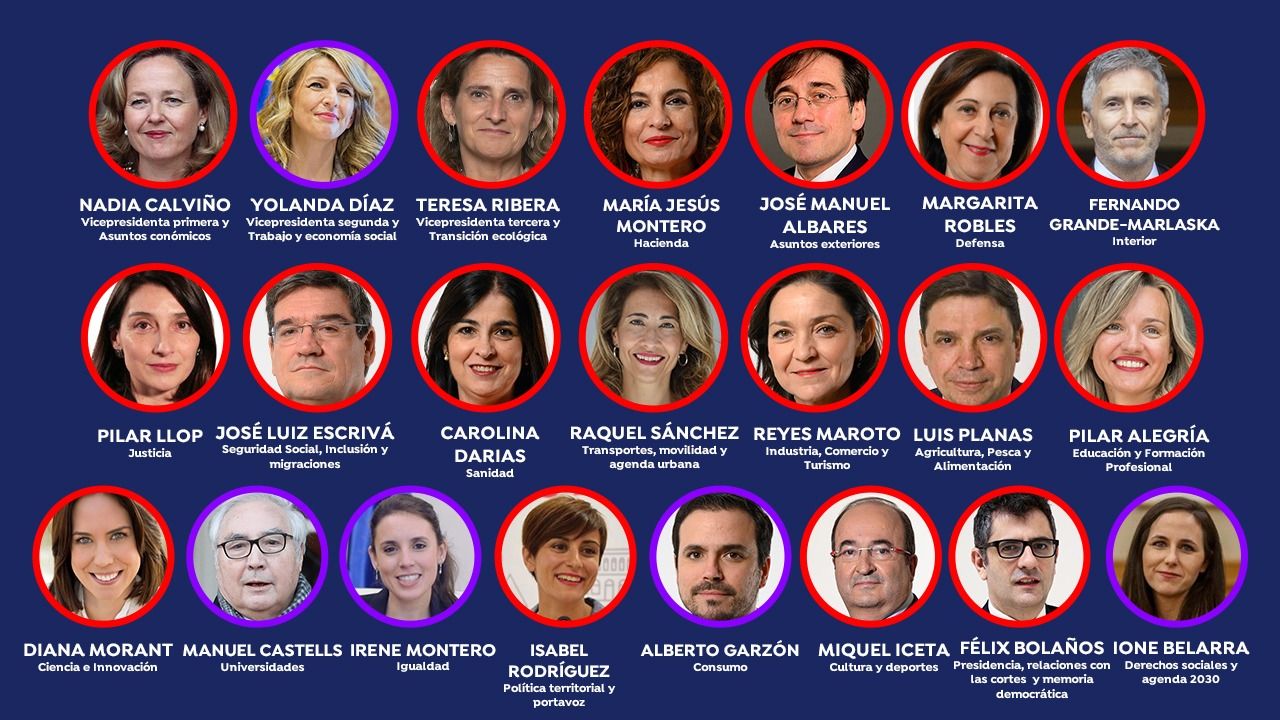 Por otro lado, tal y como acordó el presidente del Gobierno Pedro Sánchez con la vicepresidenta tercera y titular de Trabajo y Economía Social, Yolanda Díaz, los miembros del gobierno de Unidas Podemos se mantendrá tal y como están. De esta forma UP ha logrado mantener sus ministerios: