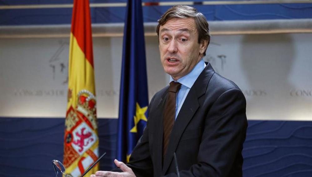 El portavoz del PP en el Congreso, Rafael Hernando, ha calificado de "disparate" y "esperpento" el planteamiento del diputado electo de JuntsxCat, Jordi Turull, sobre la posibilidad de investir telemáticamente como presidente a Carles Puigdemont.