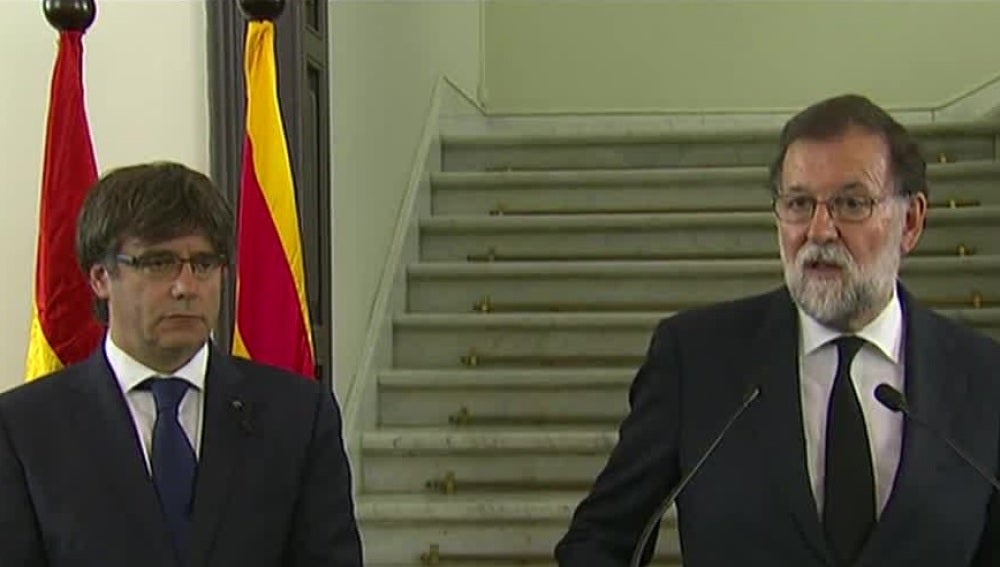Ha defendido que el gran objetivo es atender a los heridos de los atentados y a las familias de las víctimas, y policialmente es aclarar los hechos, detener a los responsables cuanto antes y evitar que se repita. El presidente del Gobierno, Mariano Rajoy, y el de la Generalitat, Carles Puigdemont, han comparecido este viernes ante la prensa tras encabezar el Gabinete de crisis en la Conselleria de Interior del Govern.