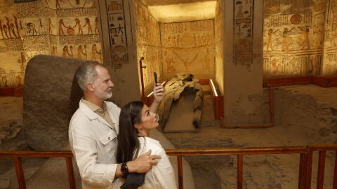 Felipe VI y doña Letiza han conocido los principales hallazgos y se han adentrado en dos de las tumbas de faraones del Valle de los Reyes que cuentan con sistemas españoles de iluminación y seguridad.